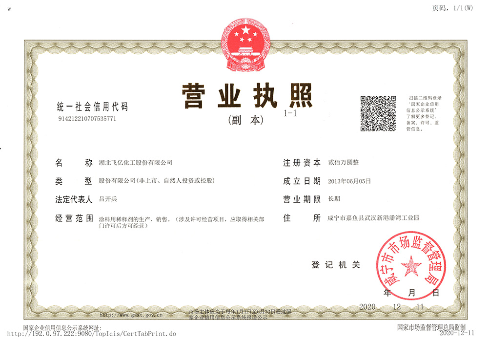 湖北飛億化工股份有限公司成立于2005年,專業從事各種油漆涂料稀釋劑的生產批發,經過公司全體員工的多年拼搏與努力,本著客戶至上、誠信至上、質量至上的三上原則和高素質、高效率、高品質的三高理念,公司在木器稀釋劑行業中取得了不菲的成績。在公司以批發為主的行銷原則下,在湖北、湖南、浙江、山東、山西、陜西、江西、貴州、廣西、廣東、安徽、河南、河北、江蘇、甘肅、青海、西藏、新疆等地建立了良好和健康的銷售網絡。湖北飛億化工股份有限公司以人為本、倡導學習。經過多年的凝聚和歷練,公司擁有豐富實踐經驗的技術人員和銷售、生產的團隊,不斷研發適合市場和客戶的高質量產品。并努力爭取各項產品和服務達到客戶滿意。為滿足市場和客戶要求,湖北飛億化工股份有限公司于2013年投資興建了占地30000平方的集生產、檢測、庫存于一體的現代化生產基地,公司熱忱歡迎有志之士與我們共同成長、共同壯大和共同發展。
